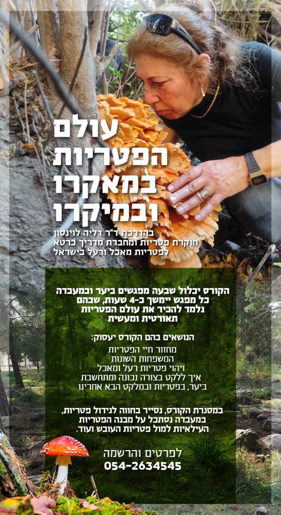 מצורפת הזמנה לקורס: עולם הפטריות במאקרו ובמיקרו, של ד"ר דליה לוינסון לפרטים נוספים: 054-2634545