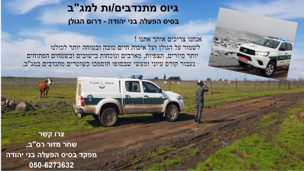 גיוס מתנדבים ומתנדבות למג"ב 19/10/2021 חדשות ועדכונים 0 Comments Share This Tweet Share Pin It Share מנהל האתר עוד מאמרים מעניינים הלוחש לעגבניות באמצע מישור הבזלת שמתחת למושב שעל, בין עדר כבשים מנומנם למטעי הנשירים מתגלה לי מתחם… התנדבות בחוות היישום באבני איתן: התחדשות, פריחה וטכנולוגיות מתקדמות חוות היישום באבני איתן נמצאת בחודשים האחרונים בתנופת התחדשות. בחווה הוקמו חממות חדשות ומתקדמות בהן… גידול תות שדה בחוות היישום באבני איתן גידול תות שדה בחווה נעשה במצע מנותק בתוך גרובגים של קוקוס נקי, של מרום גולן,… This Post Has 0 Comments כתיבת תגובה לבטליש להתחבר למערכת כדי לכתוב תגובה.