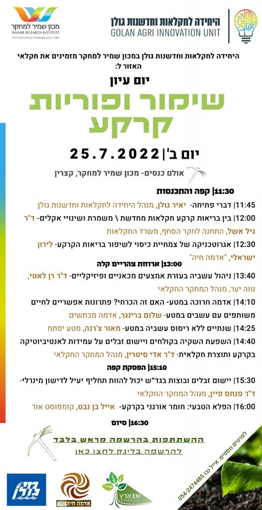 חקלאי הגולן והאזור מוזמנים ל 💡 יום עיון מרתק בנושאים האלה בדיוק שיתקיים במכון שמיר בקצרין ביום ב' | 25/7 | 11:30- 16:30|