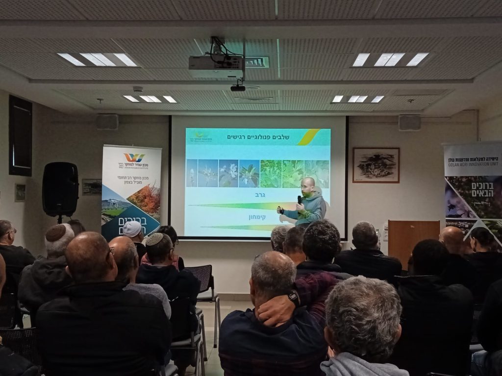כחלק מסדרת כנסי החורף של היחידה לחקלאות במכון שמיר, ב-1.1.23 התארחו במכון שמיר מגדלי הנשירים ממבוא חמה ועד מג'דל שמס, לסיכום עונה והכנה לקראת העונה הבאה. את הכנס פתחה ד"ר ענת זיסוביץ' חריט, מדריכת שה"ם, עם חשיפה לנתוני נטיעות, עקירות מתוכננות ויבולים בענף. הנתונים הגיעו מהרבנות הראשית לישראל, הלמ"ס ומחלקת חטיבת המחקר של משרד החקלאות ובעקבות ההתעניינות הרחבה יפורסמו בהמשך. ענת הוסיפה ודיברה על מנות הקור שהצטברו עד כה בתחנות האזוריות ואנו תקווה שיימדדו עוד מנות קור ועוד מנות גשמים הגונות. בהמשך למדנו על הרכבות ירוקות מפי אלון פרי, אחראי תחום הרכבות בחישתיל ואיתמר גור ממשתלת טסלר. נחשפנו לטכנולוגיות חדשות של ניטור פוטנציאל מים בגזע וטיפול בעשבייה בעזרת חשמל, הודות לחברת סטוראס וחברת ניו פלדמן. סיימנו בשתי הרצאות מבית: אייל נבו, מדריך קרקע ומים, נתן מבוא מקיף להיכרות עם חיישני קרקע לבקרת השקייה וליאור גור, פיטופתולוג מכון שמיר חתם את הכנס עם סקירת ממשק הדברה משותף לגרב ולקימחון בתפוח.