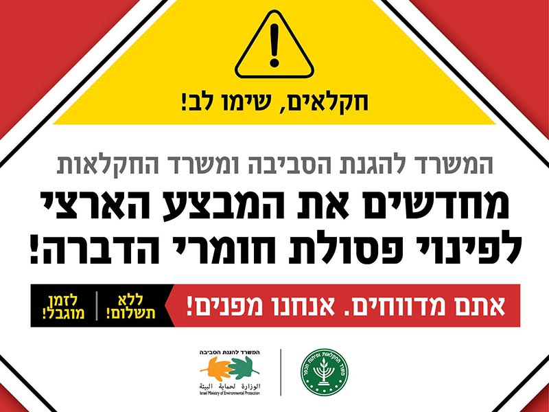 המשרד להגנת הסביבה ומשרד החקלאות ופיתוח הכפר מחדשים את מבצע פינוי פסולת חומרי הדברה מחקלאים בכל רחבי הארץ.
