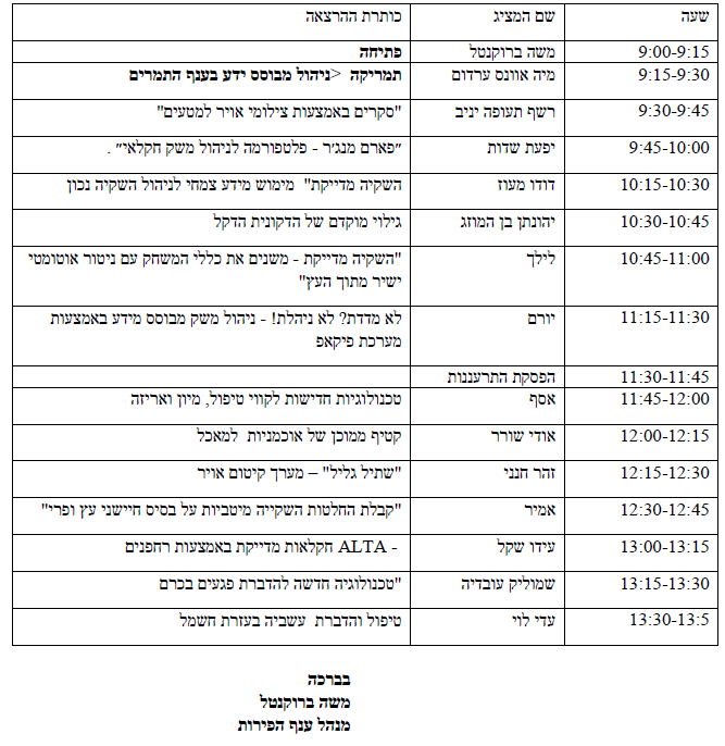 קהל היעד של יום העיון הם חקלאים ,רכזי ועדות חקלאיות חברי שולחנות המגדלים.