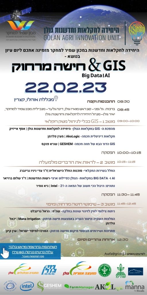 היחידה לחקלאות וחדשנות גולן מזמינה אתכם לכנס בנושא GIS וחישה מרחוק בשימושי חקלאות