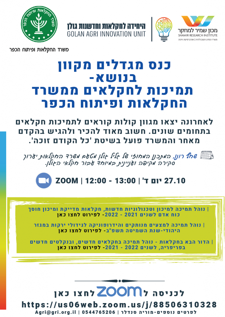 תמיכות לחקלאים ממשרד החקלאות – כנס מגדלים מקוון